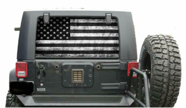 Jeep SUV Distressed Subdue Flag Window Decal Perforated Vinyl Wrap 20×50